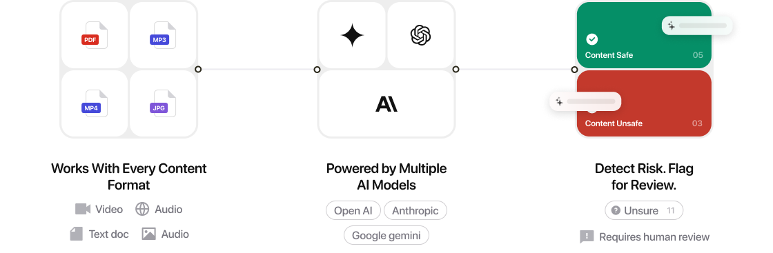 Sensitive or borderline cases can be routed for review to maintain accountability.